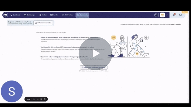 Die Dokumente-Funktion ermöglicht es Ihnen, verschiedene Arten von Dokumenten, wie Rechnungen, Lieferscheine, Gutschriften, Produktblätter, Flyer, Angebote und mehr, hochzuladen und zu teilen.