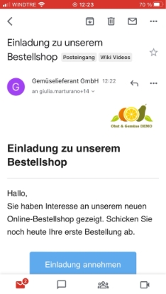 If, for unknown reasons, the link does not work, you will find an invitation code in the email invitation to the shop.