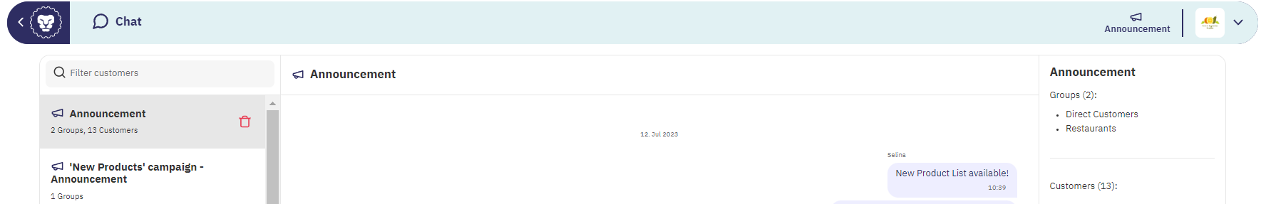 Ayez des conversations individuelles ou envoyez des annonces à des groupes spécifiques de clients.
