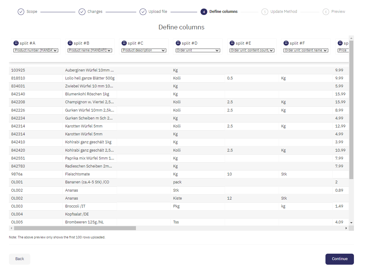 Assegnare la definizione corretta alle colonne. Questo passaggio viene saltato se si utilizza il modello Orderlion, ma si consiglia di tornare indietro e rivederlo.