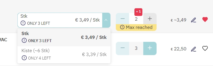 Solo quando la quantità scende al di sotto di 6, viene visualizzata la quantità disponibile per indicare la scarsità.